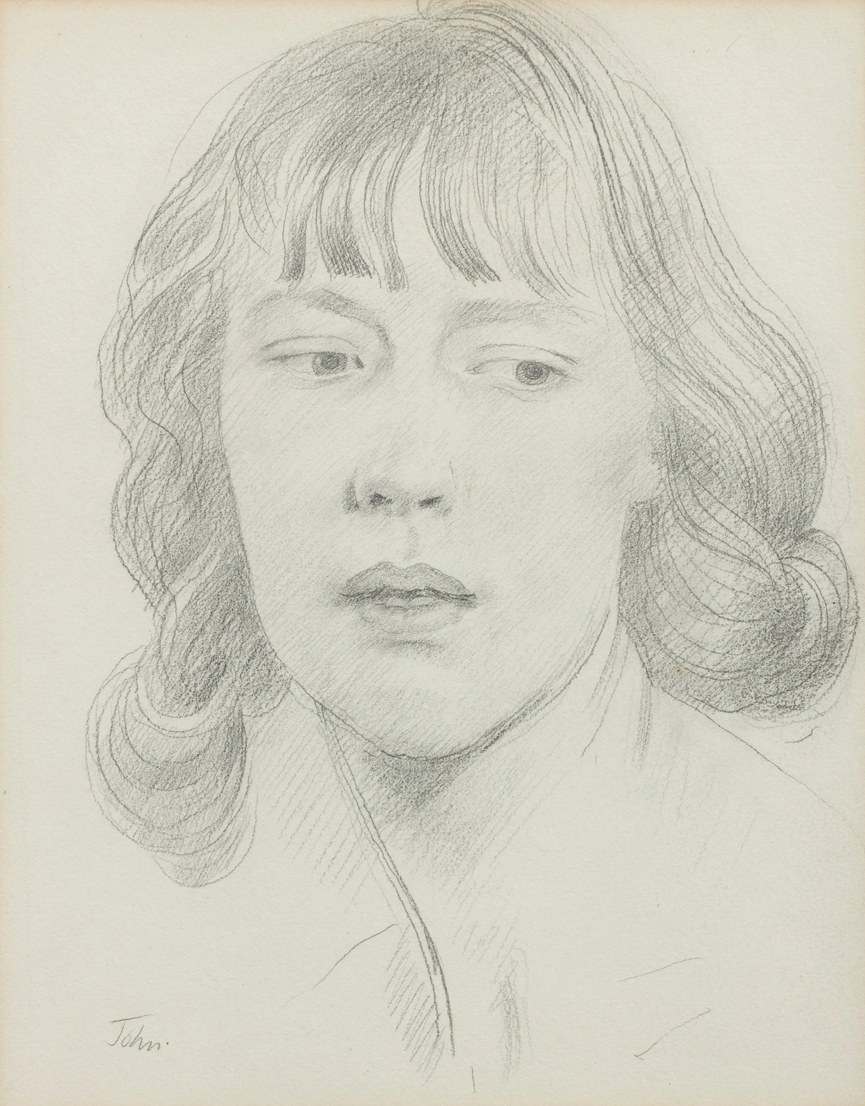 In 1907, Euphemia modelled for ‘countless studies’ by John. These were mostly eloquent full-length pencil portraits, which show her wreathed in full-length dresses with heavy, dense skirts, sometimes elaborated with a sash. His full-face portrait of her has greater pathos and intimacy, and unusually depicts her with a fringe. John’s nickname for Euphemia was ‘Lobelia’, reflecting both a streak of Whitmanesque poetic whimsy and the intimate, even possessive nature of his relationship with her at the time. But it was a short-lived intimacy. In his autobiography Chiaroscuro, John mentioned her once only and then in relation to James Dickson Innes with whom she had a love affair—she was described there simply as ‘his Euphemia’.