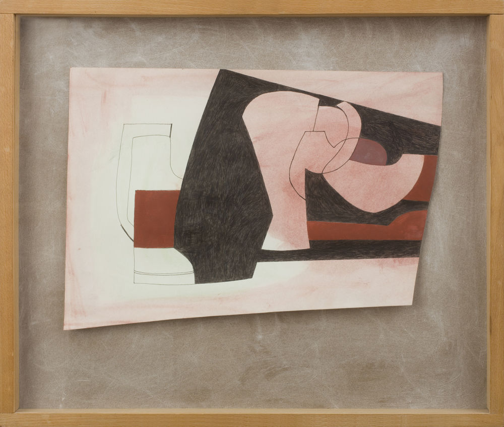 Pink, Red and Black, 1978Ink and oil on prepared paper on masonite board34.29 x 48.9 cm