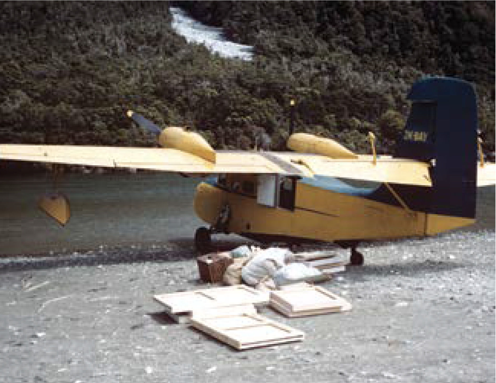 There was also a touch of adventure about some of Marr’s painting trips, which he undertook after swapping engine oil for oil paint. In 1961, Marr flew to Lake Mckerrow, New Zealand, in a five-seater twin-engine amphibious plane – a Grumman G-44 Widgeon. A photograph he took shows his painting equipment and canvases spread along the shore beside the aircraft. Mckerrow is in the Fiordland National Park, established just nine years earlier, and its steep terrain and wet climate provided Marr with the inspiration he needed. The works he made there depict tumultuous weather and evoke atmospheric effects in part by using a bold wet-in-wet technique. Many are composed using an armature of structural brushwork. In Lake Mckerrow, New Zealand (pictured above), long lines made with a single application of the brush criss-cross the surface of the work – a formal pattern which suggests an effort to frame and structure the wild landscape.