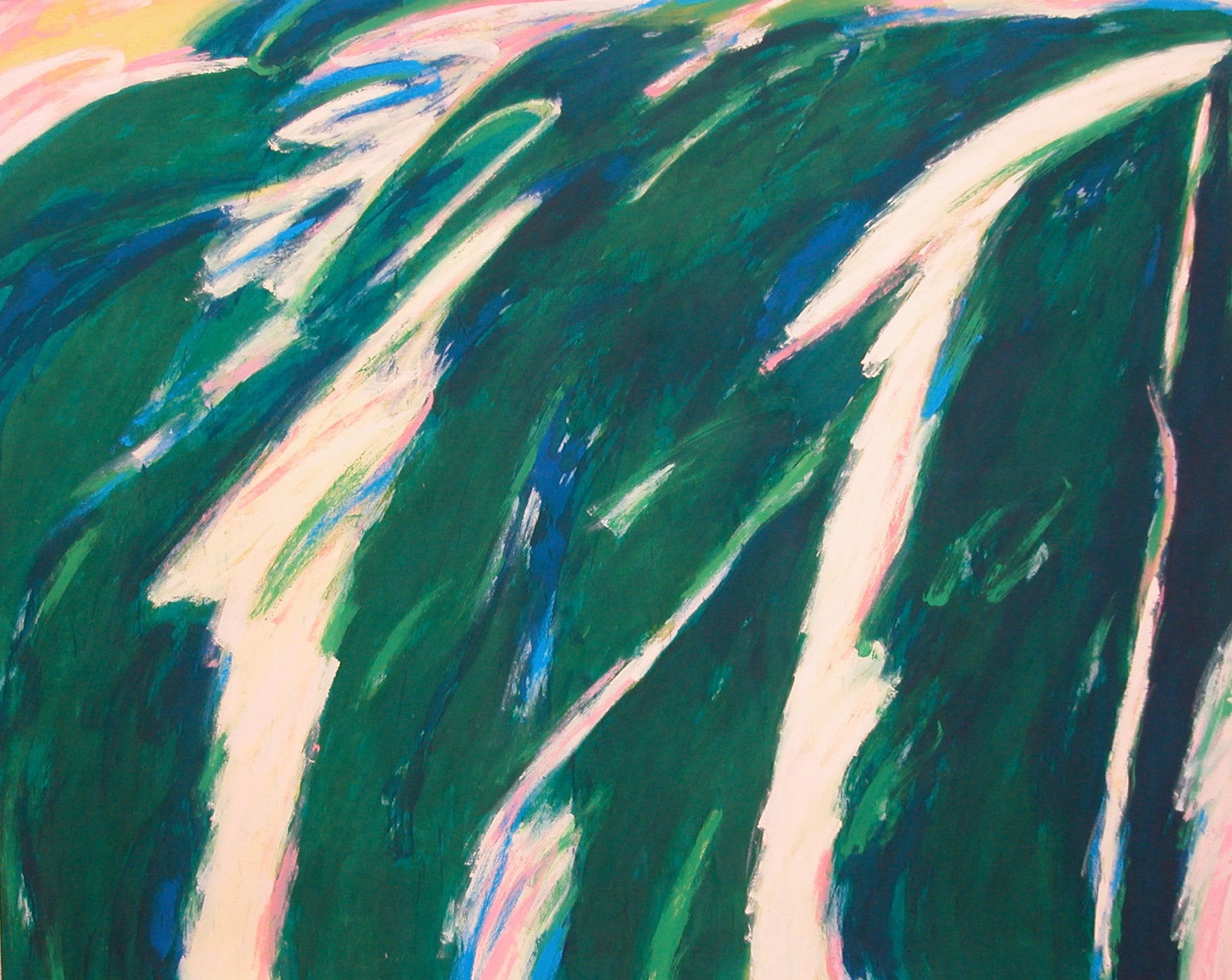 Although the experience of a particular site was always the starting point for Crozier’s landscapes, his purpose was much more ambitious than simply capturing the spirit of place. In fact, he did not believe such a thing existed. As he explained, ‘[l]andscape is not the subject; it is the vehicle through which I can express intangible things. Things which have no narrative. Loss, memory – all can be done through the language of landscape’. In Black Lake, the marriage of place with Crozier’s sumptuous, saturated washes of colour and the heightened drama of the composition creates a tension between the sensuality of paint and the struggle for the image.