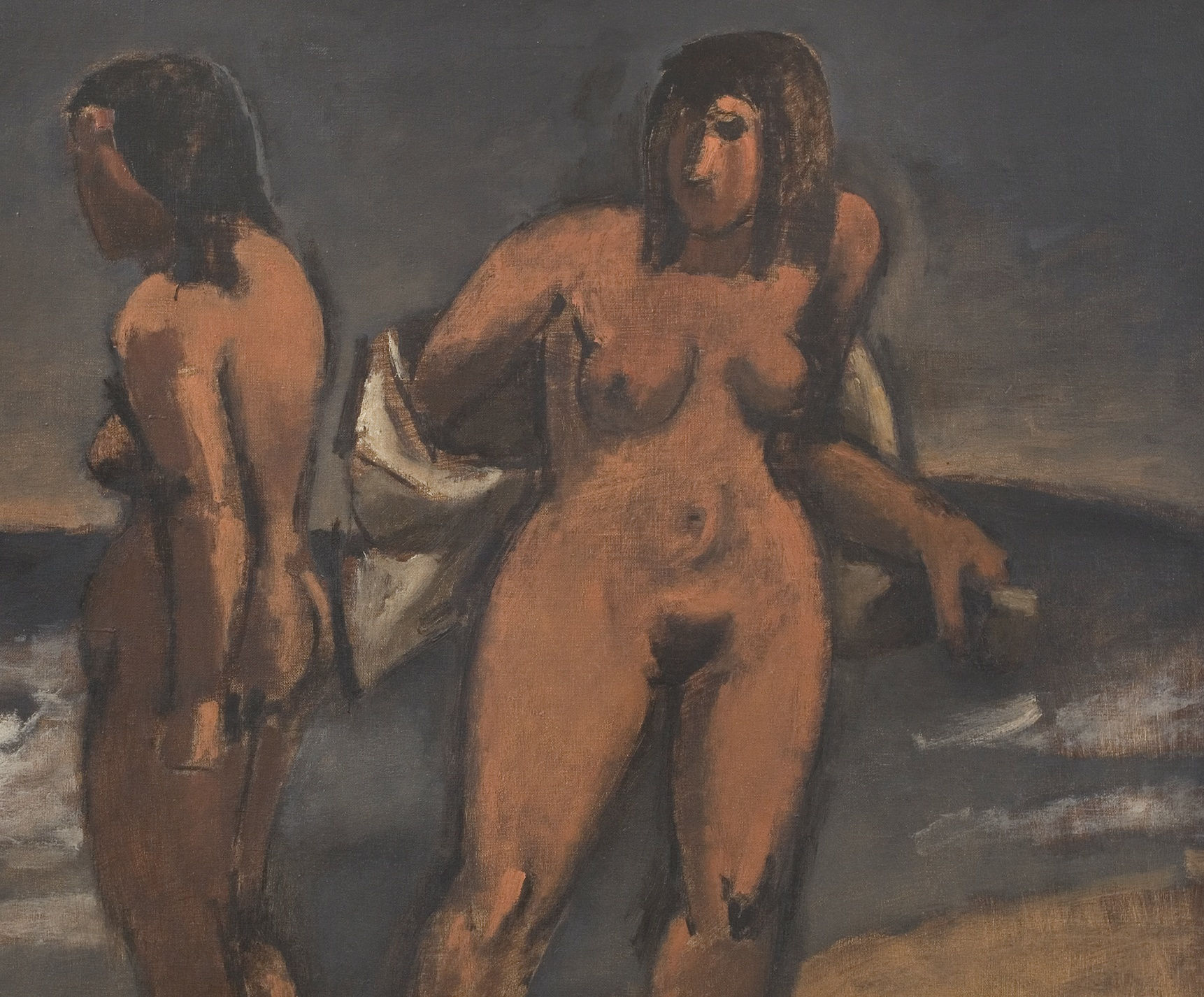 Women on the Shore was painted during Herman’s Welsh years, though unlike his depictions of miners at that time, it bears a striking resemblance to some of Pablo Picasso’s neo-classical figure paintings of the 1920s. In the 1940s, Picasso was in the ascendant among politically progressive British painters after he joined the French Communist Party in 1944. However, the connection between Herman’s Women on the Shore and a work of Picasso’s like La Course (1922) is more artistic than political.