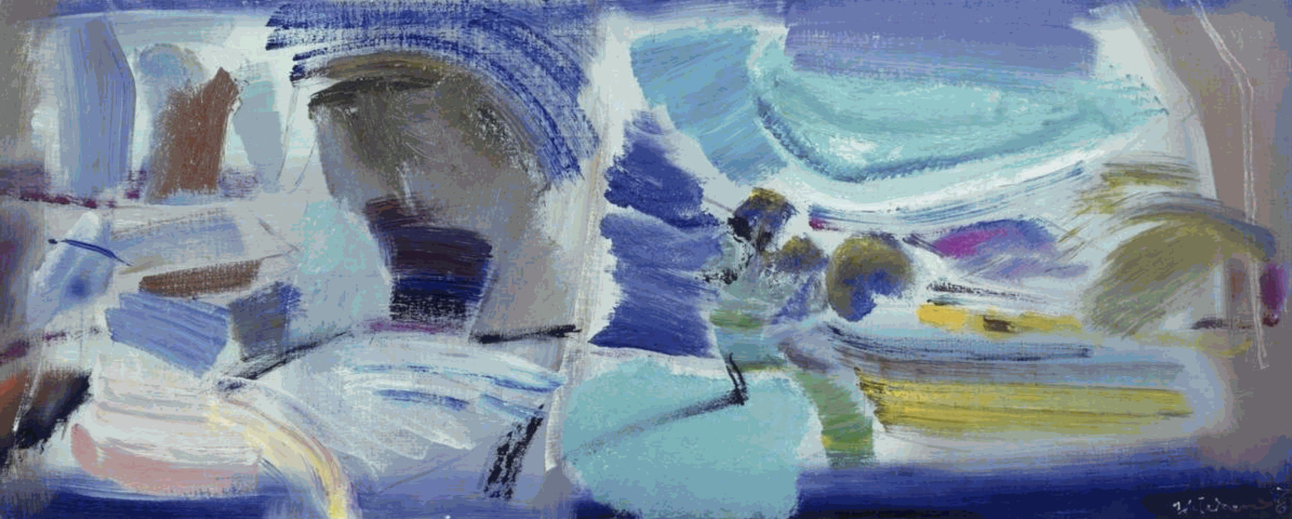Ivon Hitchens’s style was always highly individual. The free approach to colour and design in his later easel paintings developed in tandem with his work on large-scale murals in the 1950s and ‘60s.