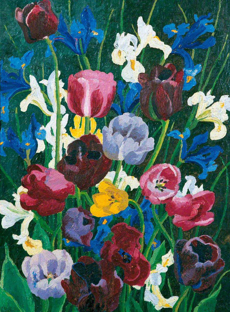 Not until 1927 did Cedric Morris (1889–1982) return to England and begin painting his famous flower pictures. Though he subsequently visited the continent to study picturesque scenes of valleys and hills, the six years he spent there after moving to Paris in 1921 were formative and experimental. The work he produced in that early period provided the basis for much of his subsequent output. In paintings like this portrait of the ballet dancer Rupert Doone, Morris was discovering the lineaments of a style that would serve him for the rest of his long career: loaded brushstrokes, contrasts of bright colour, a ‘primitivist’ simplification of the subject, and local areas of anti-illusionist flatness.