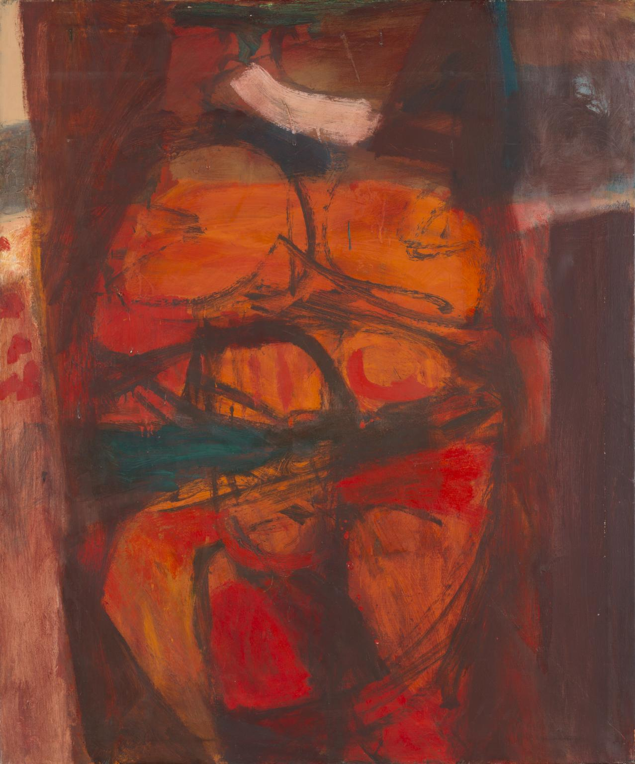 From the late 1950s until his death, Albert Irvin (1922–2015) was an abstract painter. As for many artists of his generation, his early career and training were interrupted by the Second World War. Nevertheless, by the early 1960s he had achieved a degree of distinction, making turbulent transatlantic canvases which related as much to Roger Hilton as to Willem de Kooning. A work of this period called Evening was purchased by the Arts Council in 1961 and, more recently, the Tate Collection acquired another painting with fraught energy from the early 1960s, Enclosed, which was in Irvin’s personal collection until his death.