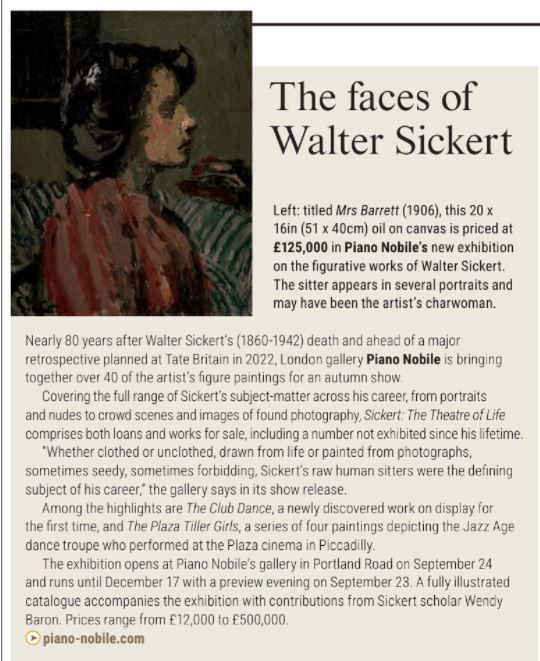 The ATG have highlighted Piano Nobile's Autumn exhibition, SICKERT The Theatre of Life. For the full article, see the link below.
