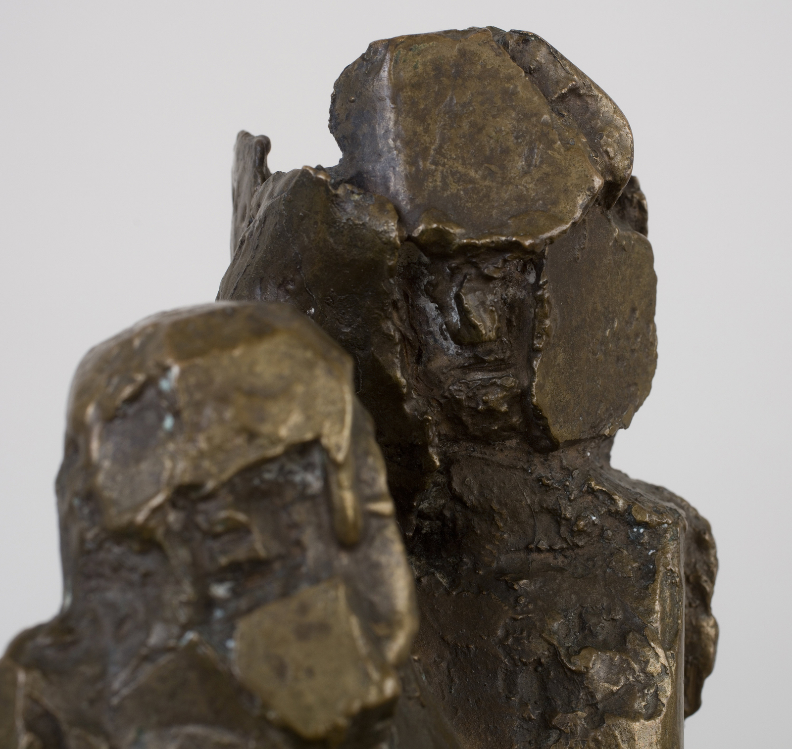 Though the title of Assassins strikes a note of sinister plotting, in appearance these figures seem more like heroic guardians. Their heavily encased heads, redolent of helmets, are one of the artist’s original devices for enhancing the human body, developed around this time. Frink tended to work on a subject in cycles and Assassins relates to other standing figures of this period, variously named ‘Warrior’, ‘Sentinel’ and ‘Judas’. The formal development introduced in Assassins was the addition of a second figure. None of Frink’s previous work used this composition and the suggestion of a collaboration between the two – a wordless compact – is implicit. It could be that Frink had absorbed rumours about Lee Harvey Oswald’s involvement with other conspirators. (Investigations by a president-appointed commission, the US House of Representatives, and the US Department of Justice have all dismissed suggestions of a conspiracy.)