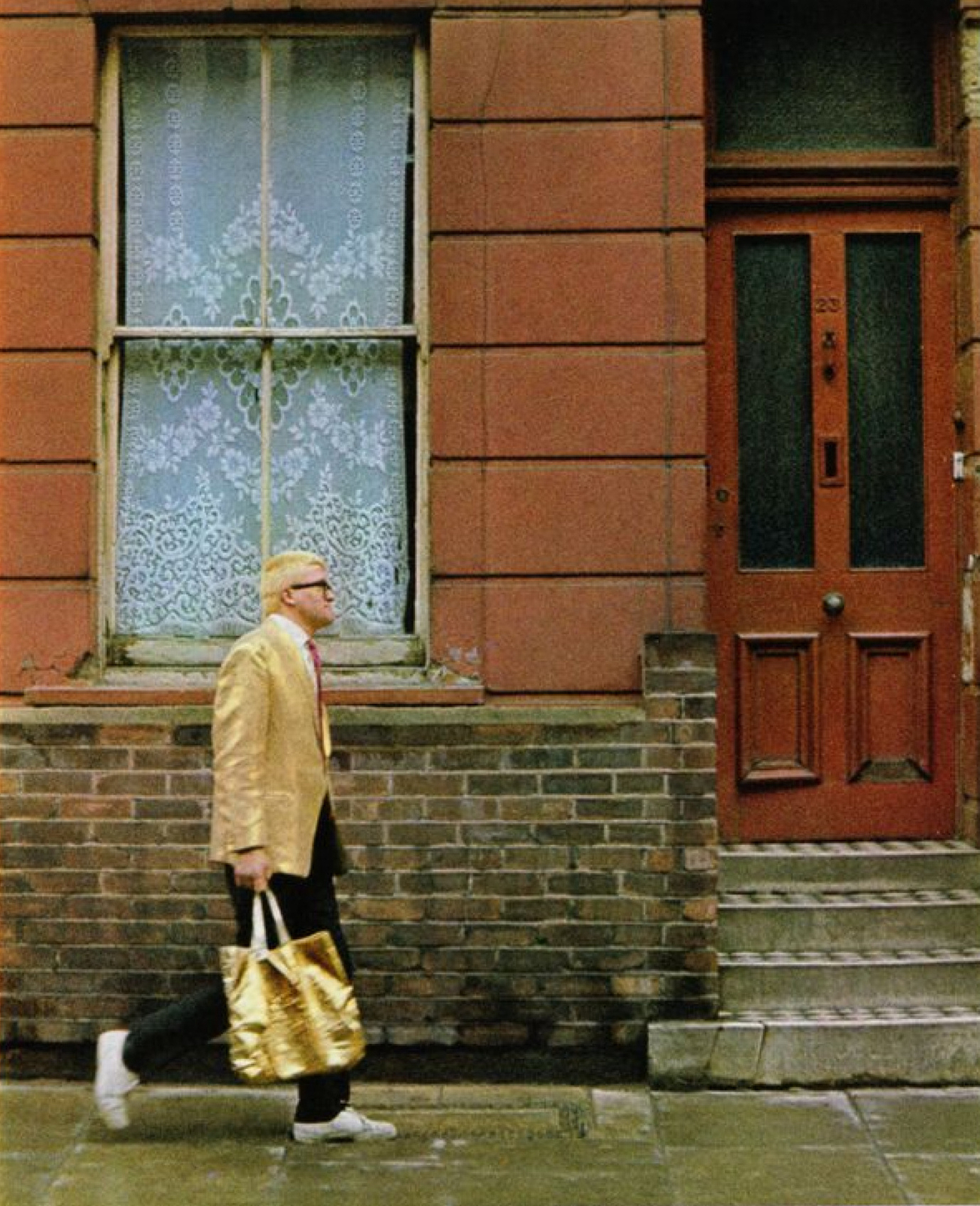 Nevill and Hockney occupied the same world. Both men helped to forge a new culture, original to the 1960s, in which modes of dress and self-fashioning were akin to the serious work of artistic creation. More than most artists and creative people, Hockney fused together his public image with the distinctive 'look' of his work. A gold lamé jacket became as much an item of Hockney's iconography as the more famous tropes in his oeuvre like Hollywood swimming pools or eclectic combinations of style.