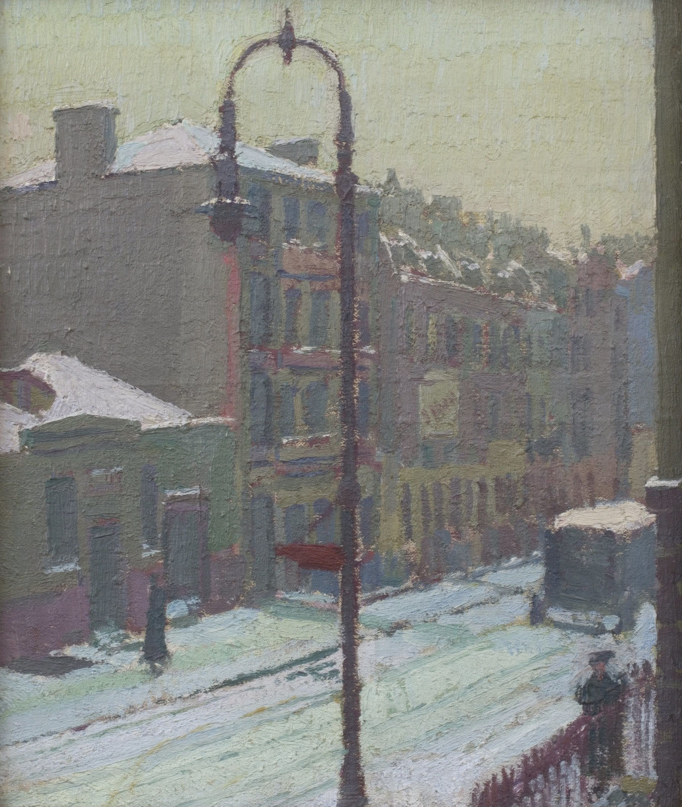 1. Harold Gilman, London Street Scene in Snow, 1917, oil on canvas, 32.2 x 27.4 cm