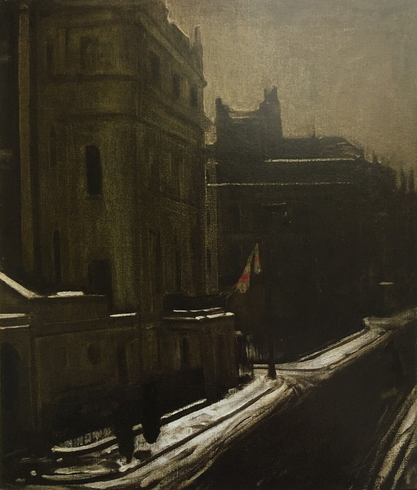 3. The larger version of London Street Scene in Snow (1917, Private Collection)