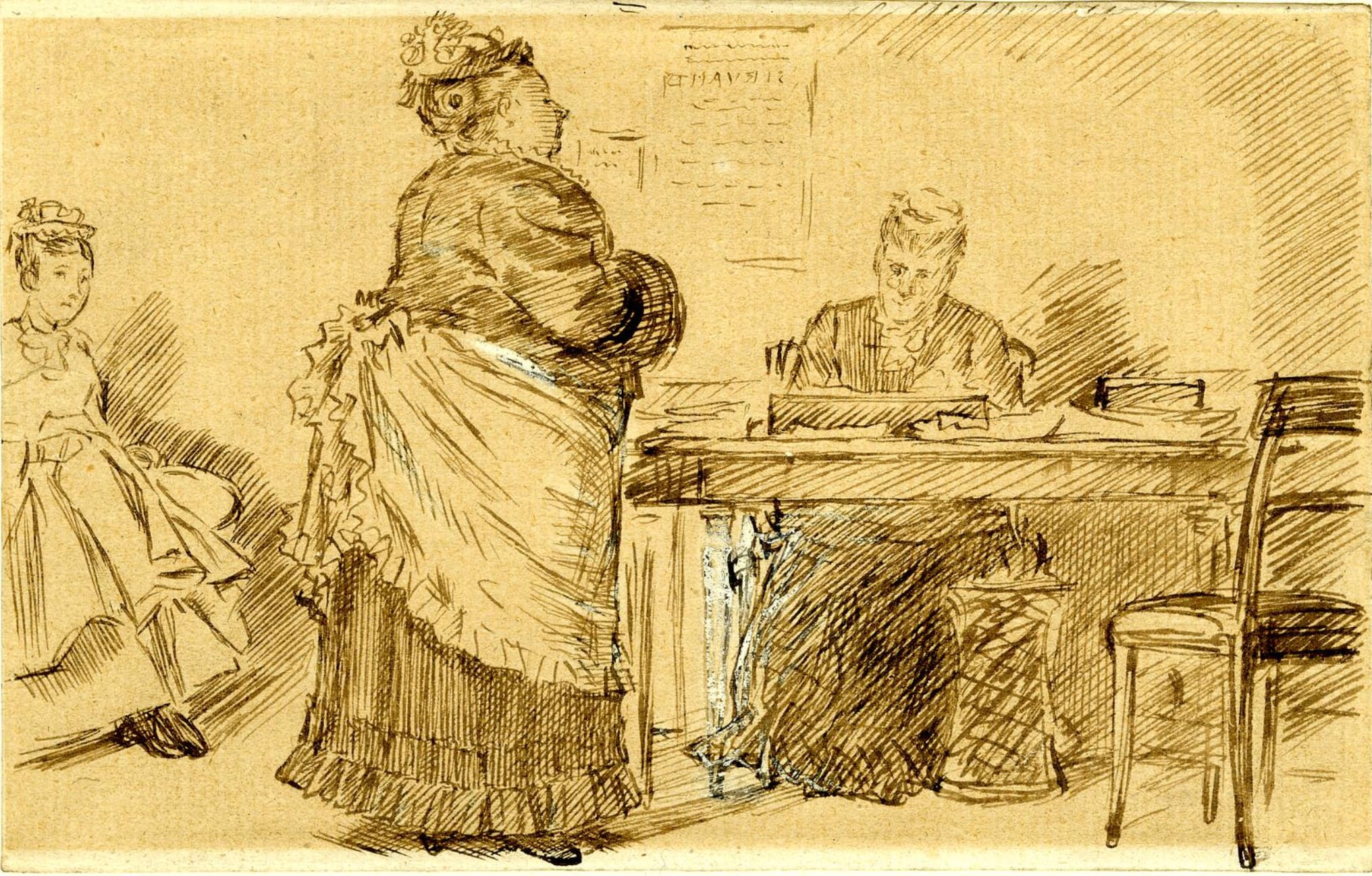 Charles Keene, Servants Agency, n.d., pen and ink with white heightening on paper,11.2 x 17.8 cm, British Museum, London