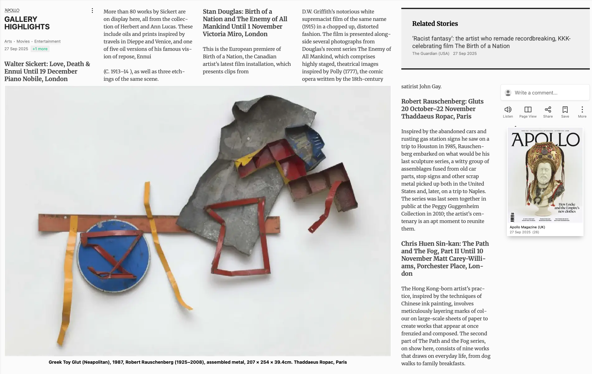 Sickert: Love, Death & Ennui leads the September gallery highlights in Apollo. >