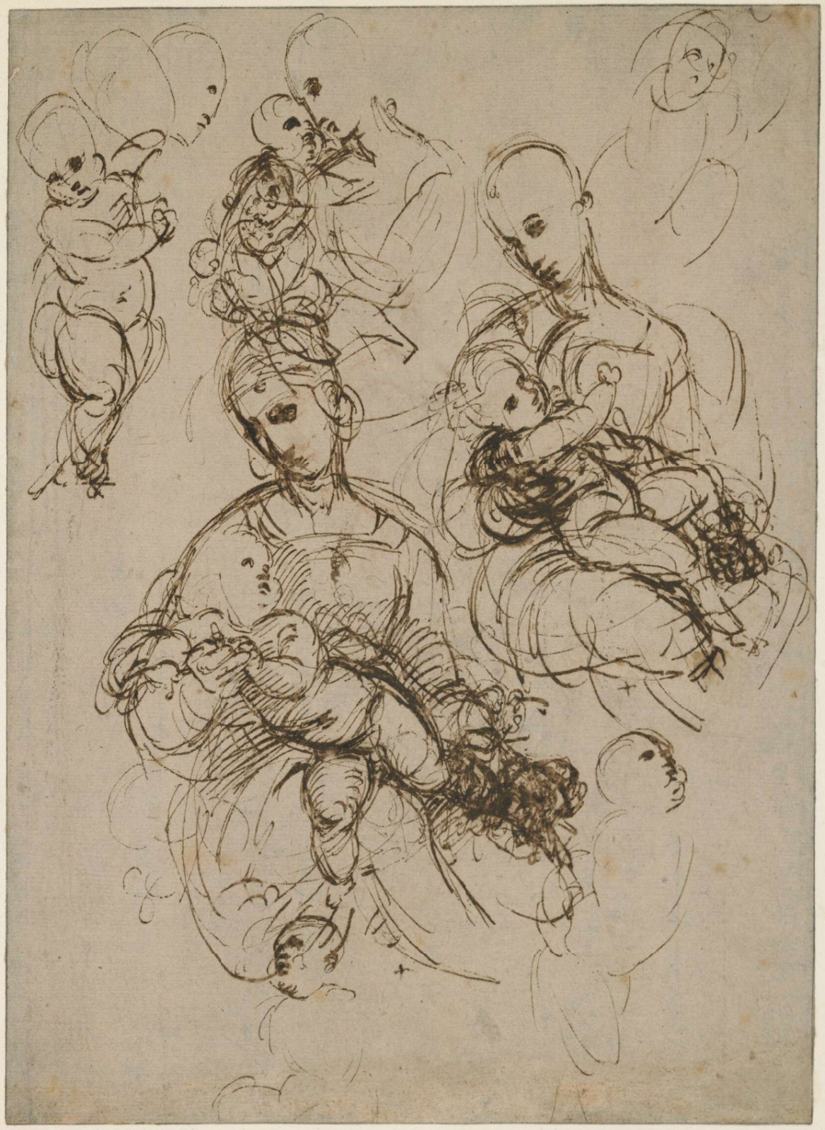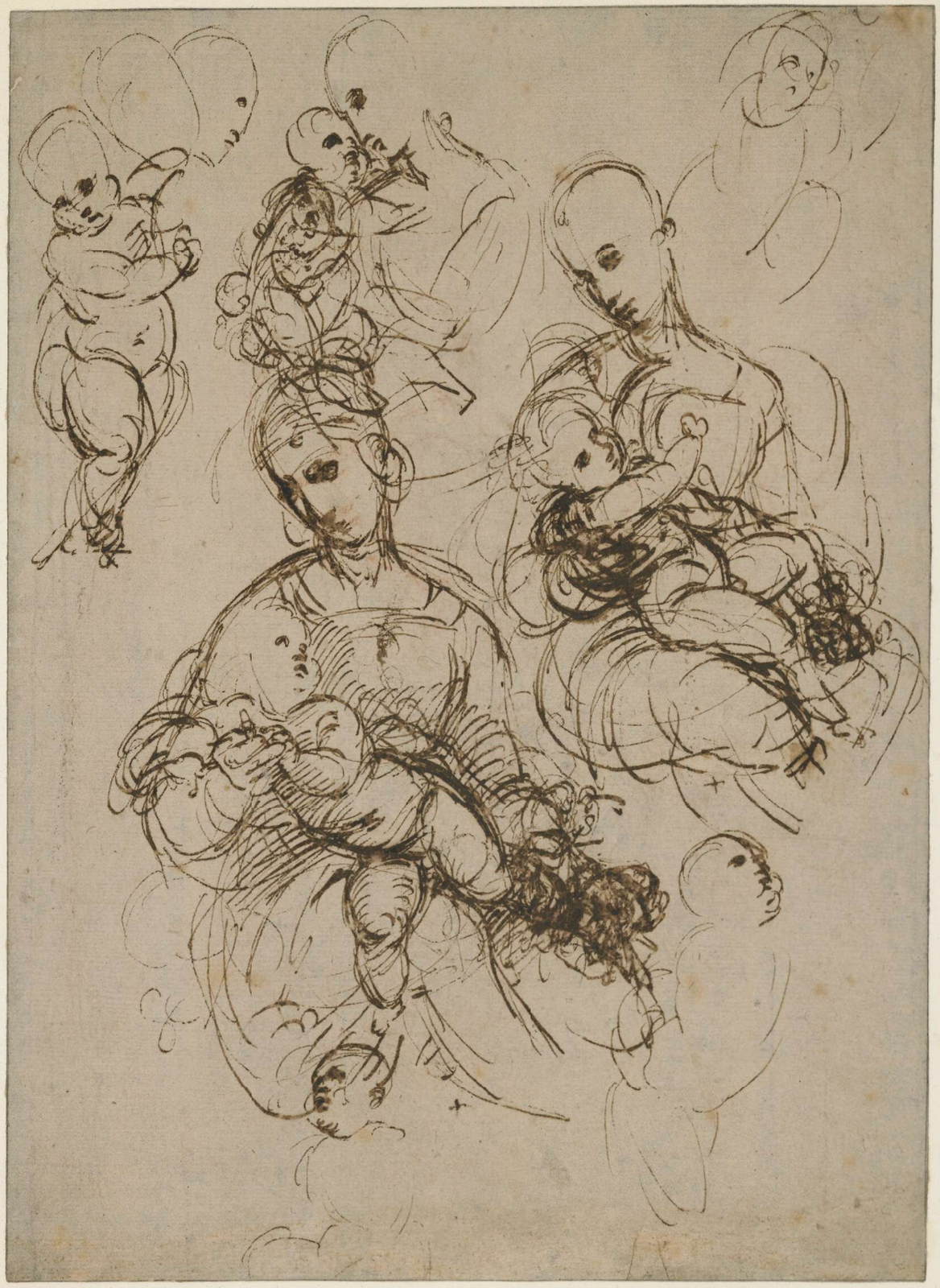 Raphael, Study for a Virgin and Child, c. 1506–07, pen and ink on paper, 25.3 x 18.3 cm, British Museum, London