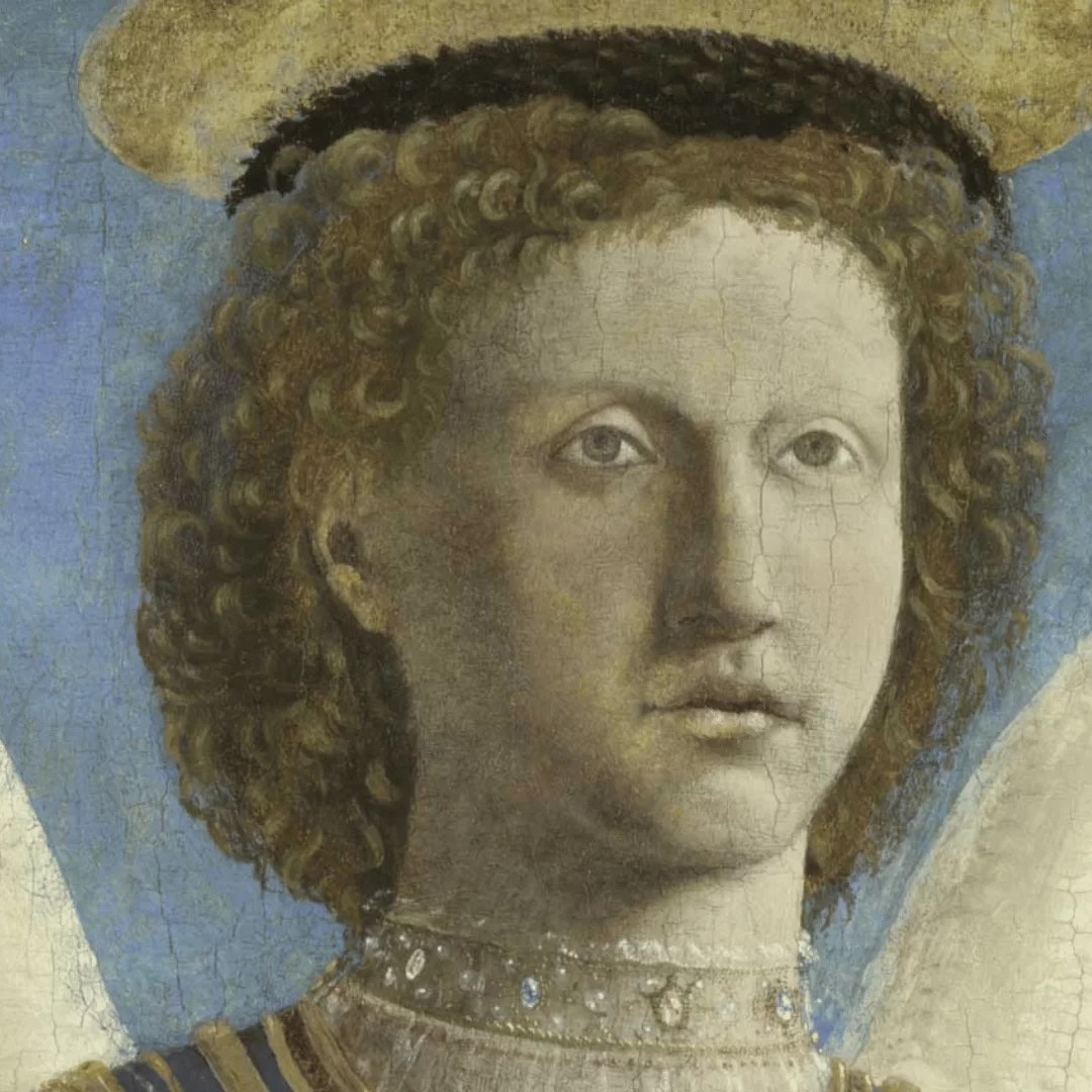 Piero della Francesca, St Michael, 1469, oil on wood, 133 x 59.5 cm, National Gallery, London (detail)