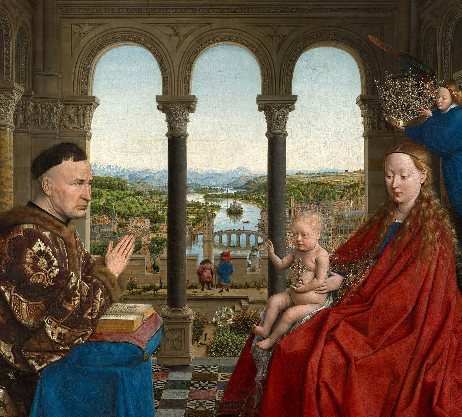Jan van Eyck, The Madonna of Chancellor Rolin, c. 1435, oil on panel, 66 x 62 cm, Musée du Louvre, Paris (detail)